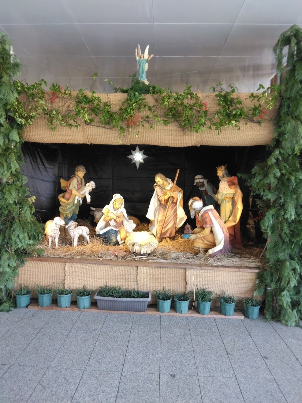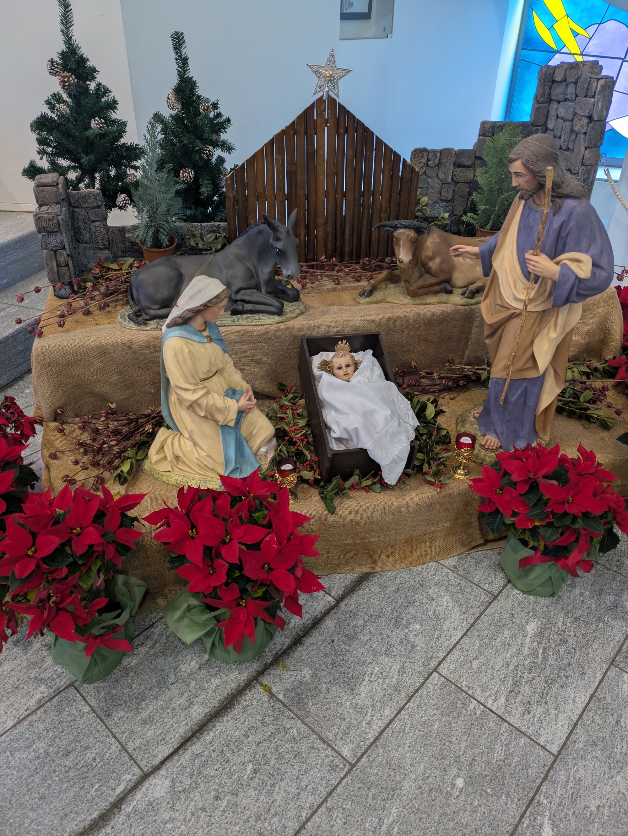 聖堂前の馬小屋と聖家族、東方三博士