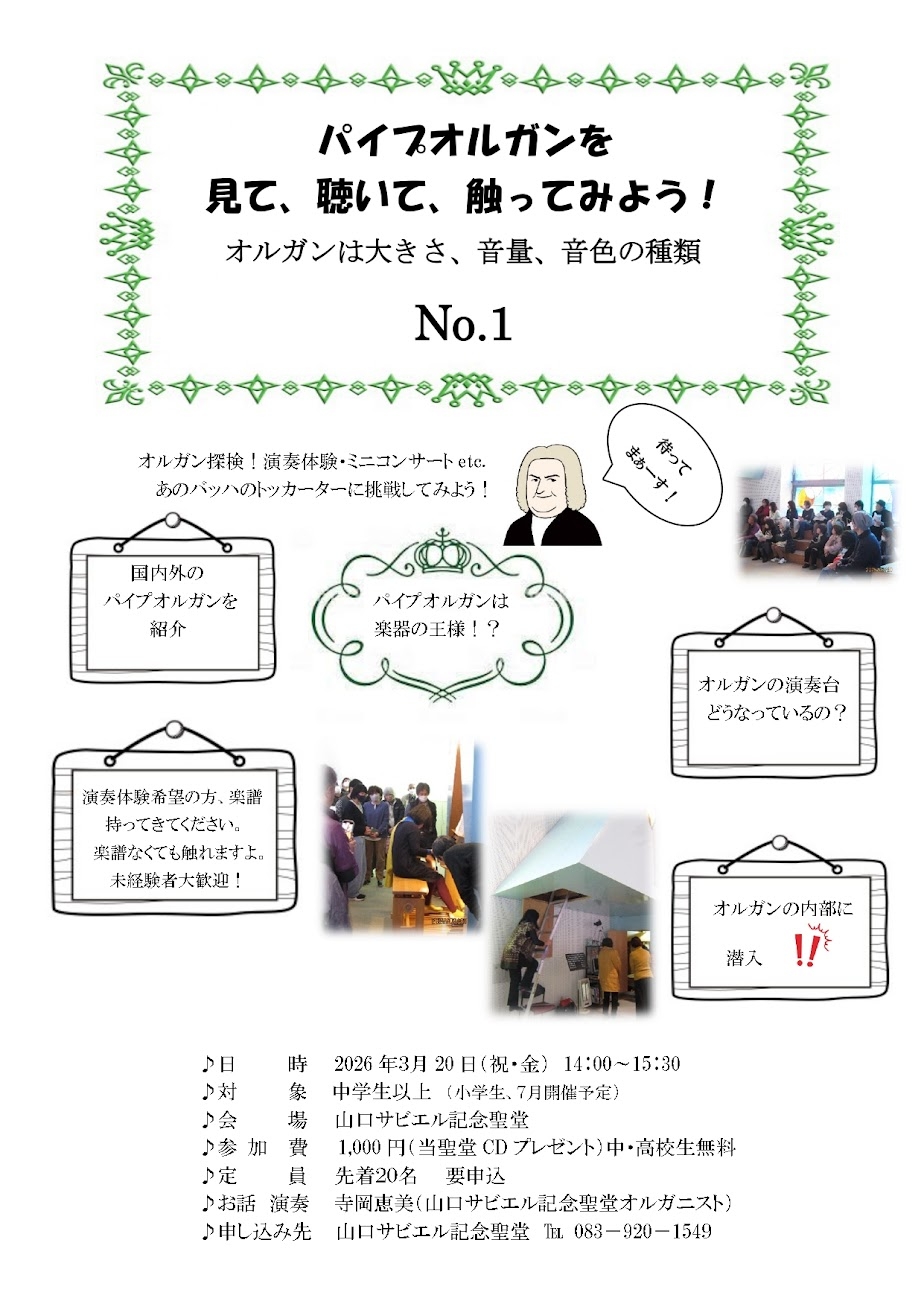 2026年3月20日(金・祝)パイプオルガンメディテーション「パイプオルガンを見て、聴いて、触ってみよう!」が開催されます