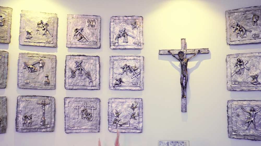 記念聖堂(2階)の見学は、行事等で使用している際は申し訳ございませんが、ガラス戸越しの見学となります。